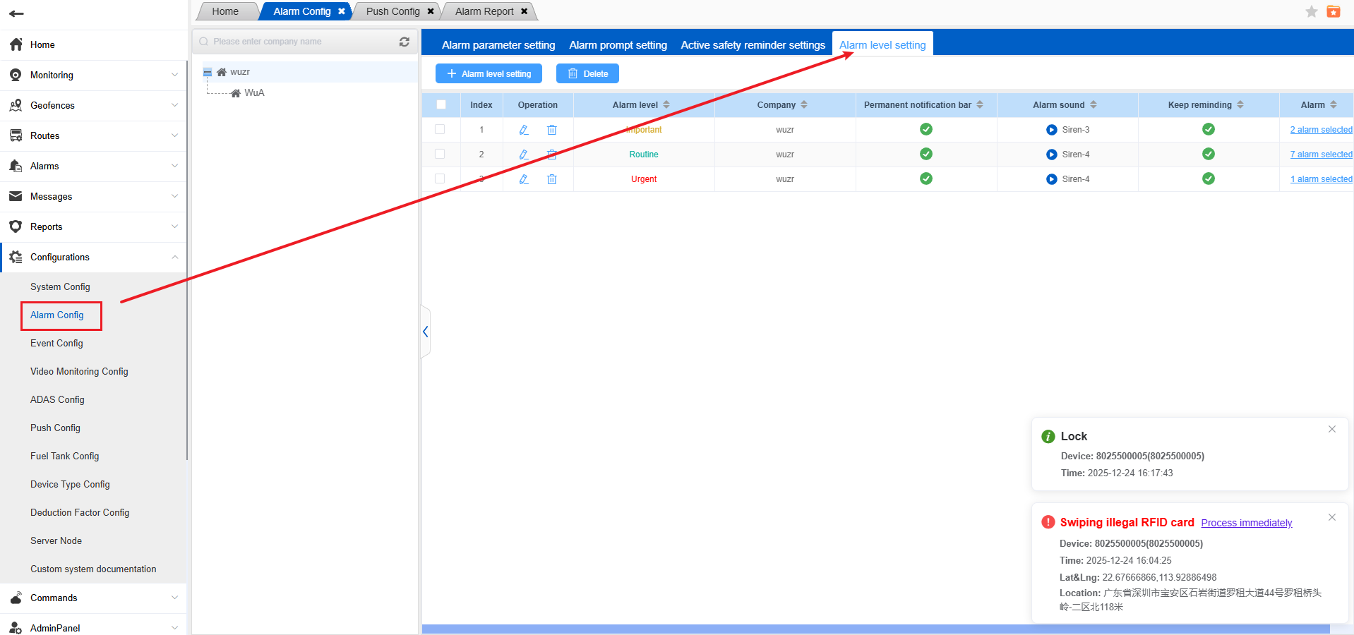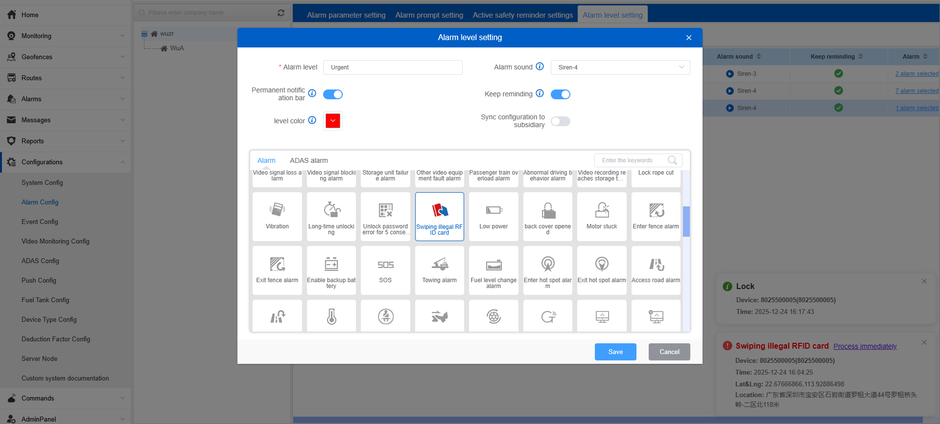 是否常驻通知栏:启用后, 该等级的报警信息弹窗会常驻在系统右下角, 直至手动刷新系统或处理完毕