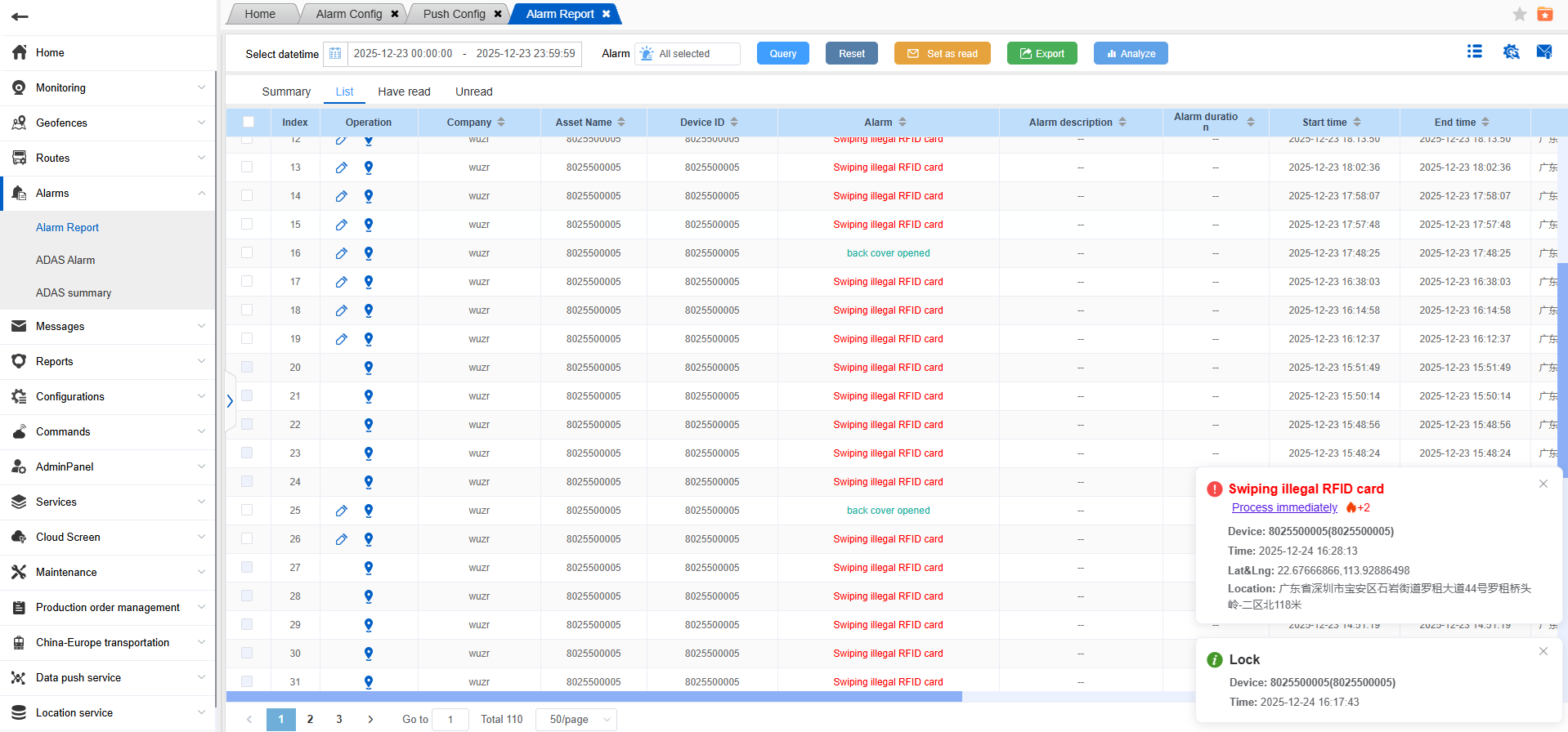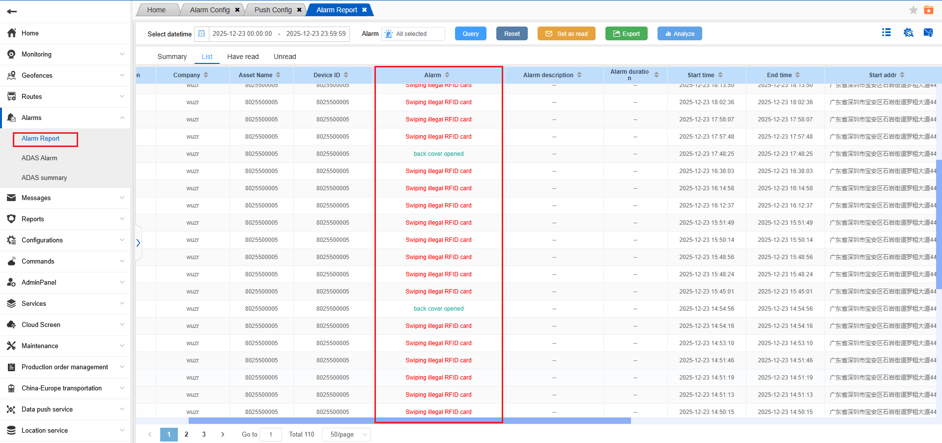 不同类型的报警级别在报警报告中被标记为不同的颜色