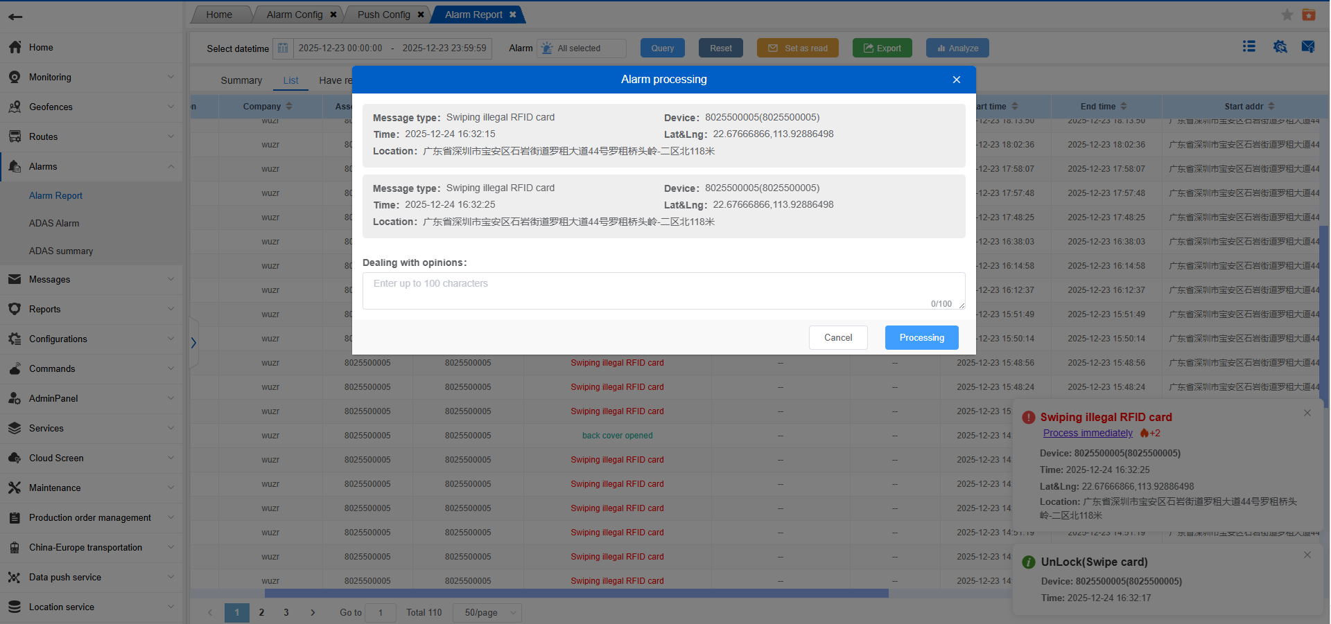 配置了常驻通知栏的报警会独立出来个通知弹窗,并回累积统计到的报警数量(弹窗中显示的最近一条报警信息),在未刷新网站的情况下,需要立即处理或手动关闭才会消失