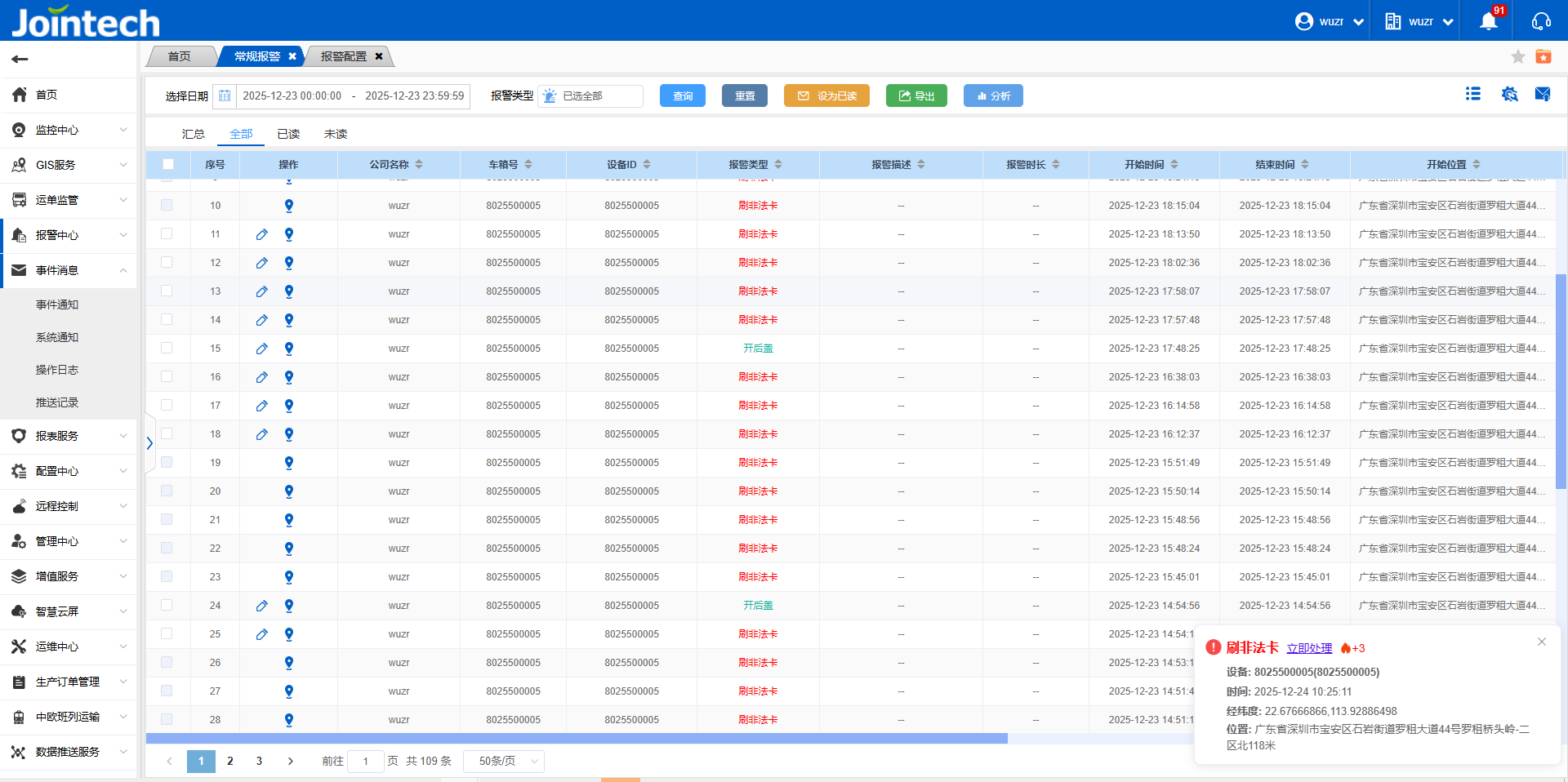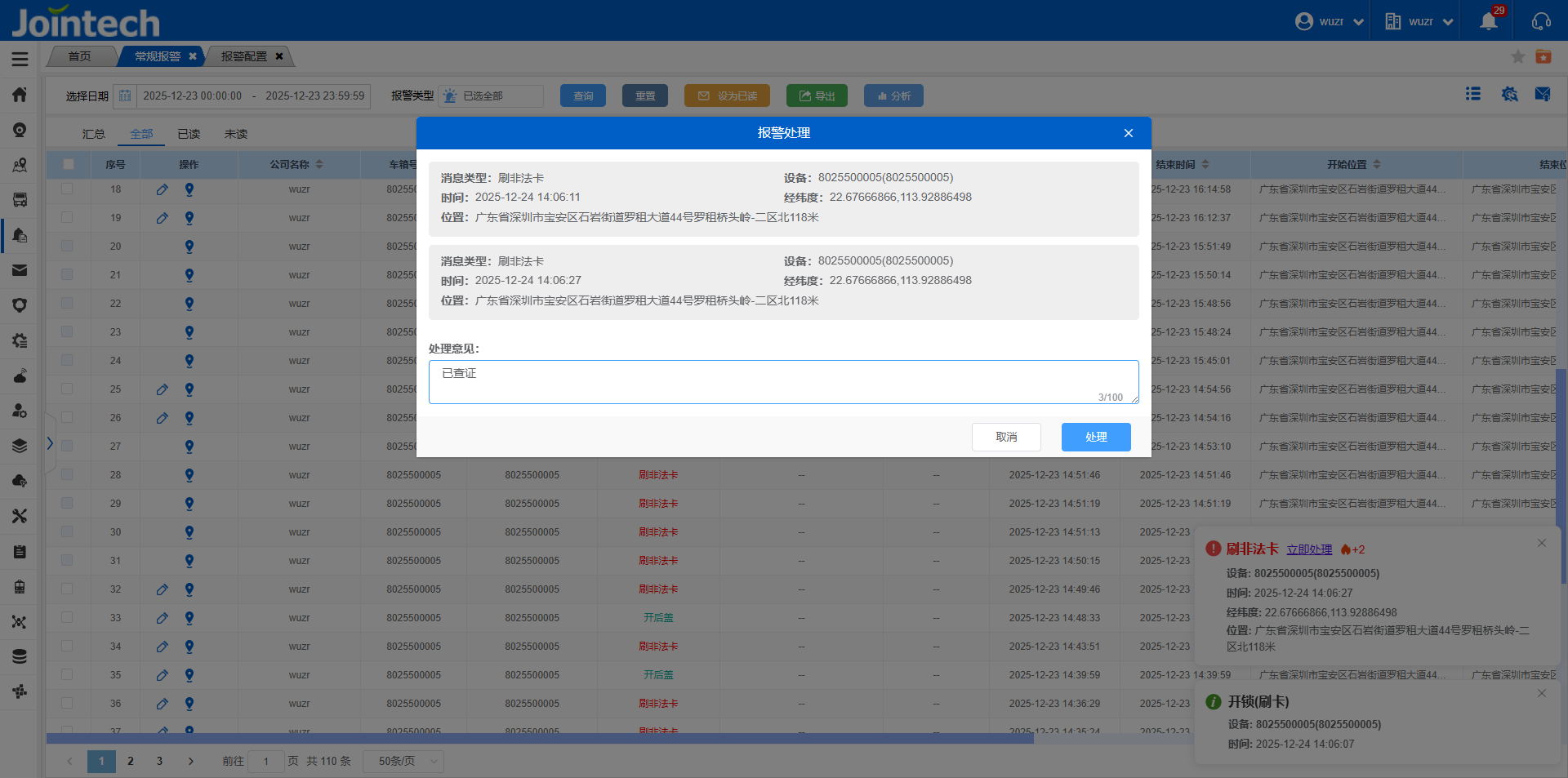 配置了常驻通知栏的报警会独立出来个通知弹窗,并回累积统计到的报警数量(弹窗中显示的最近一条报警信息),在未刷新网站的情况下,需要立即处理或手动关闭才会消失