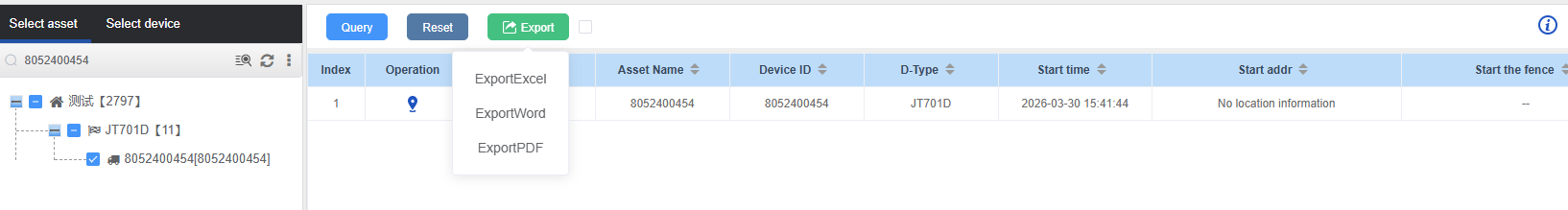 Operation steps: Reports -> Latest shipping details -> Select asset or device -> Click “Query”. All the information that meets the filtering conditions will be displayed.