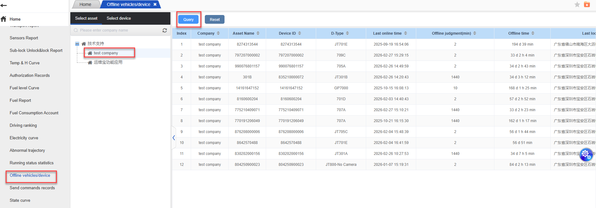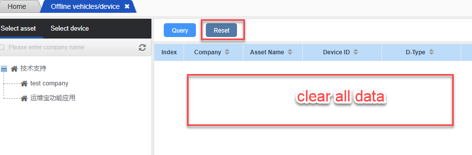 1.Click to enter the offline vehicle page. By selecting the company name, you can view all the offline vehicles and device of that company.